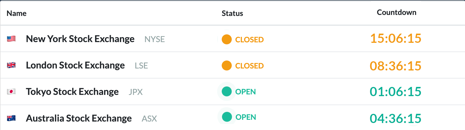 - Add countdowns or market status indicators to your website or application